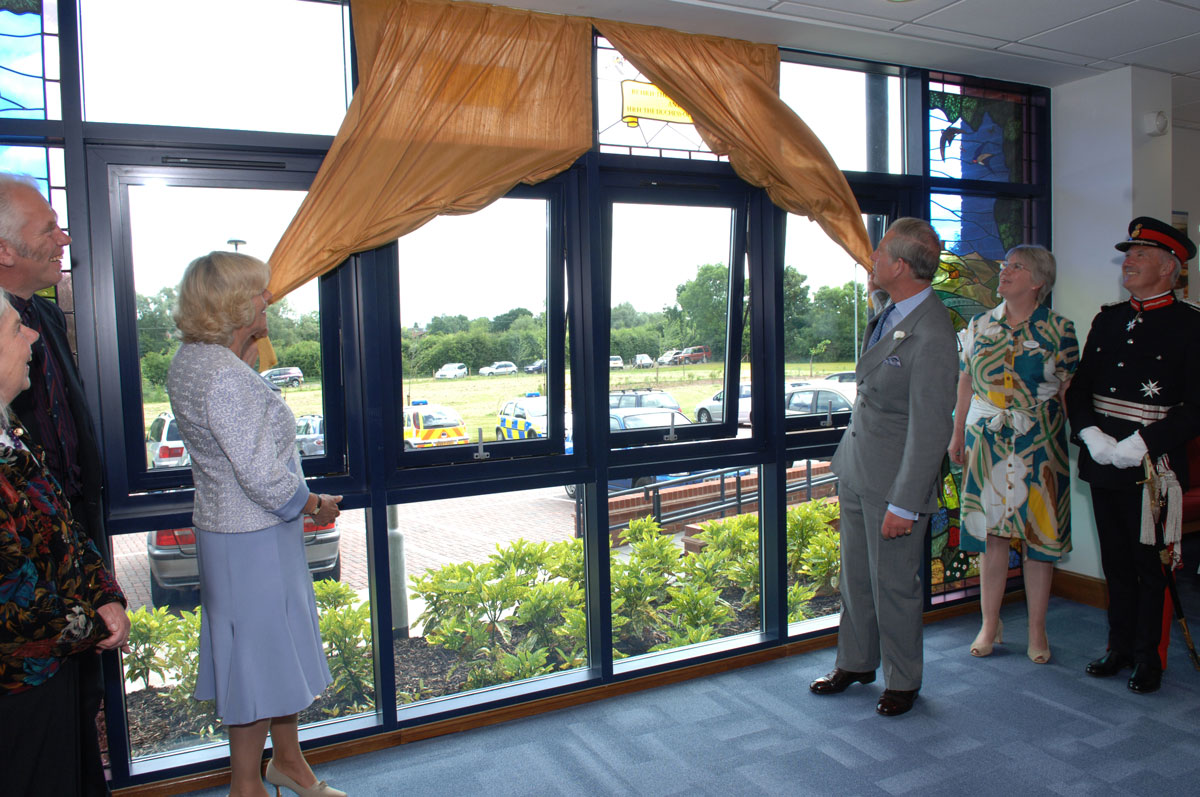 The unveiling of the stained glass at the opening of the Upton on Severn Surgery by