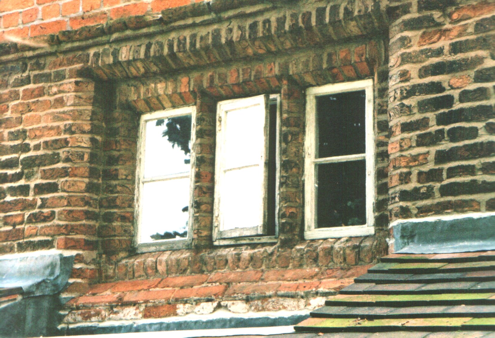 17th C window with crude 20th C softwood frame and ugly float